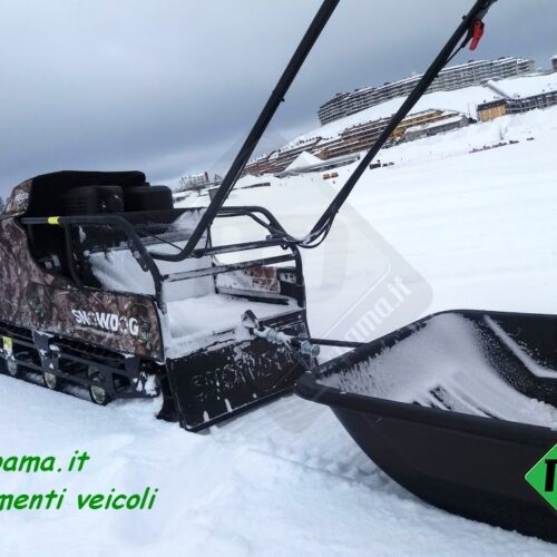CINGOLATO, da traino, adatto per il trasporto di persone e materiale, utilizzo universale 4 stagione grazie al suo peso limitato ed alla grande superficie di appoggio del cingolo sulla neve sia battuta che fresca, sui terreni di difficile accesso, motore i Brigg & Stratton XR 2100 420 CC, alesaggio diametro 90 mm, corsa 66 mm,4…
