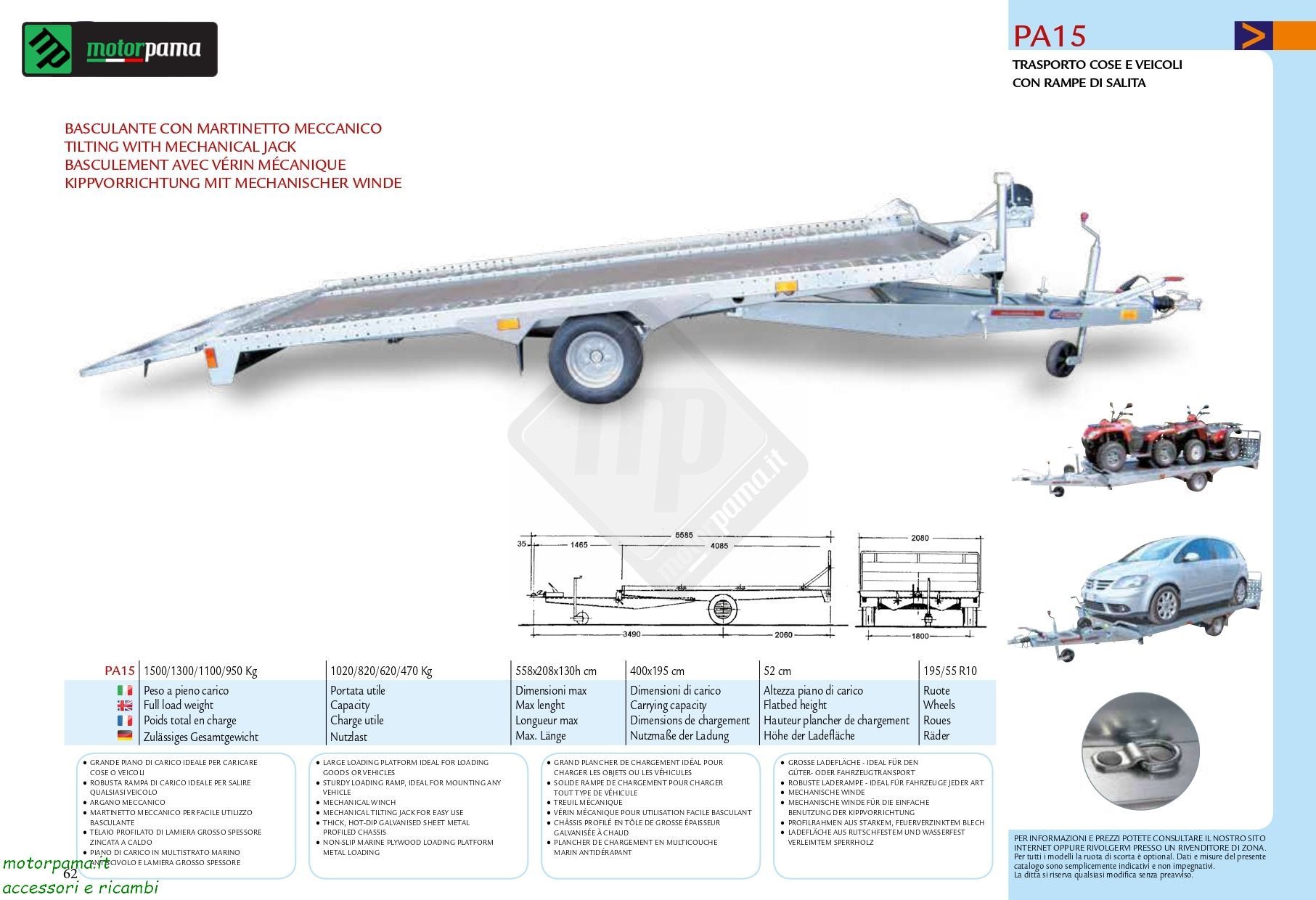 Carrello / rimorchio Cresci rimorchi PA15 basculante con martinetto meccanico adatto al trasporto di autovetture – quad – atv – scavatore – ecc.