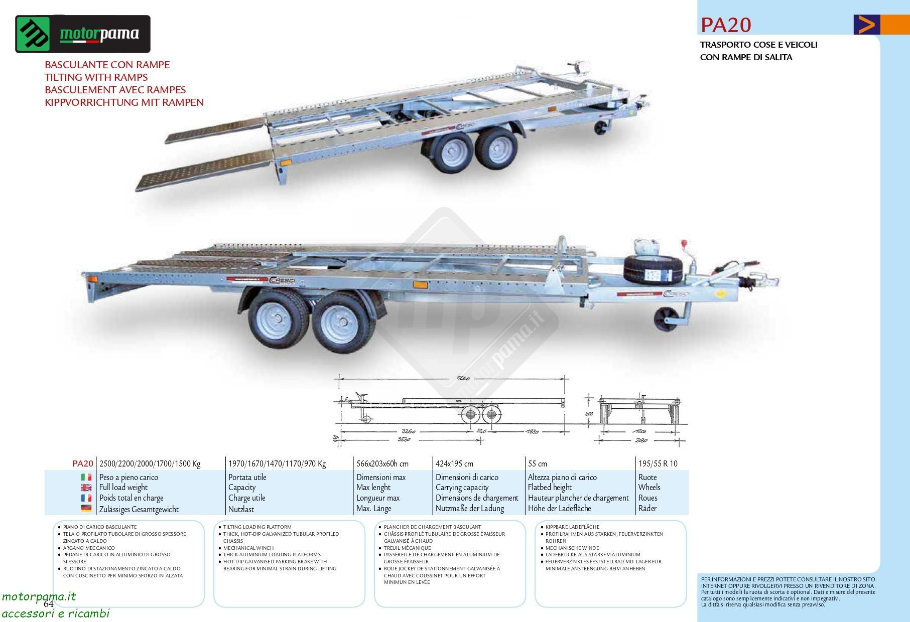 Carrello / Rimorchio Cresci rimorchi PA20 basculante con rampe di salita per auto e veicoli.