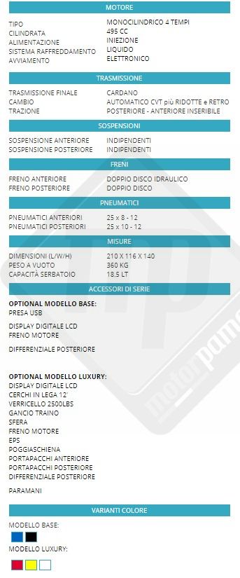 CFORCE 520EFI 4×4 passo corto (modello Luxury)