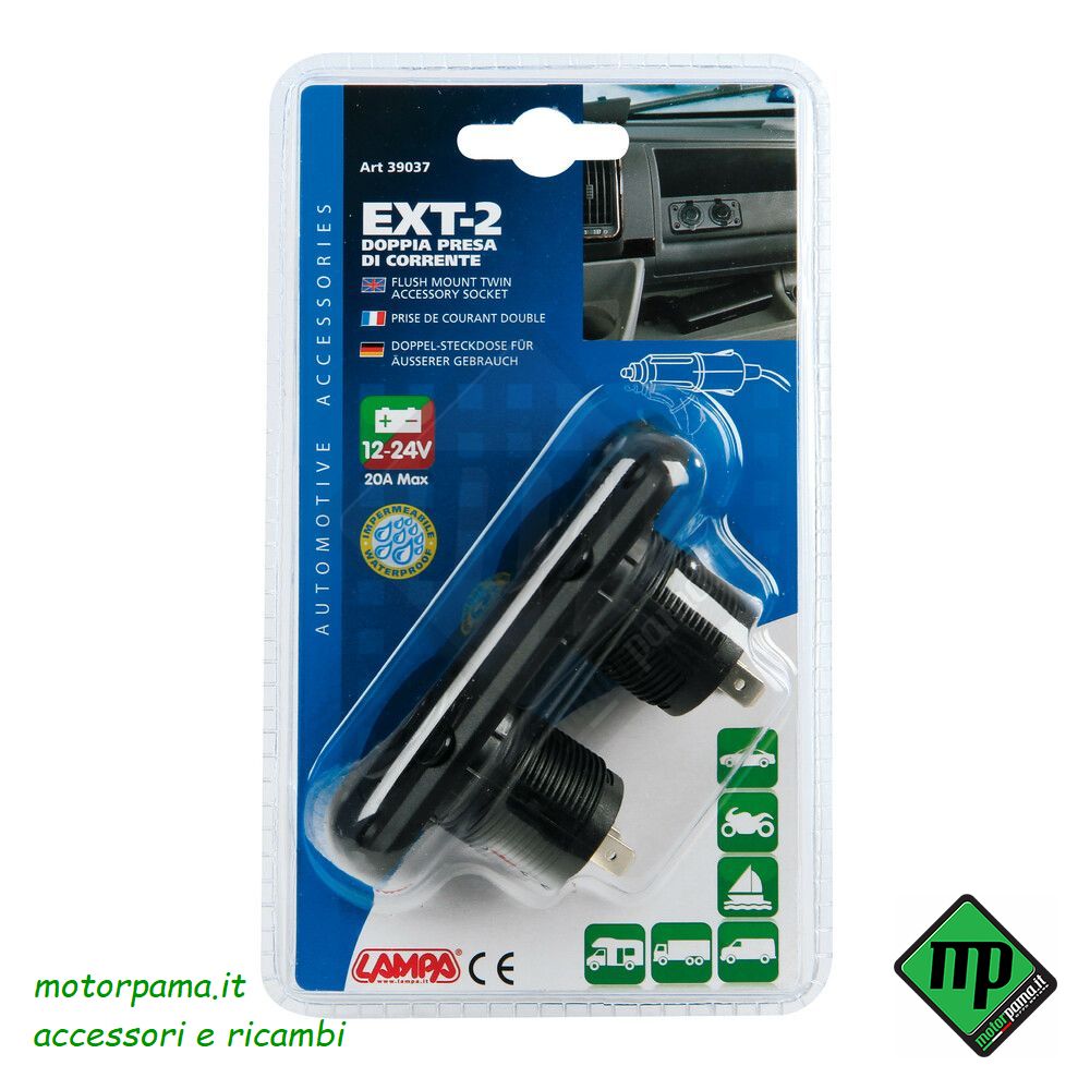 Ext-2, doppia presa corrente, montaggio ad incasso, 12/24V