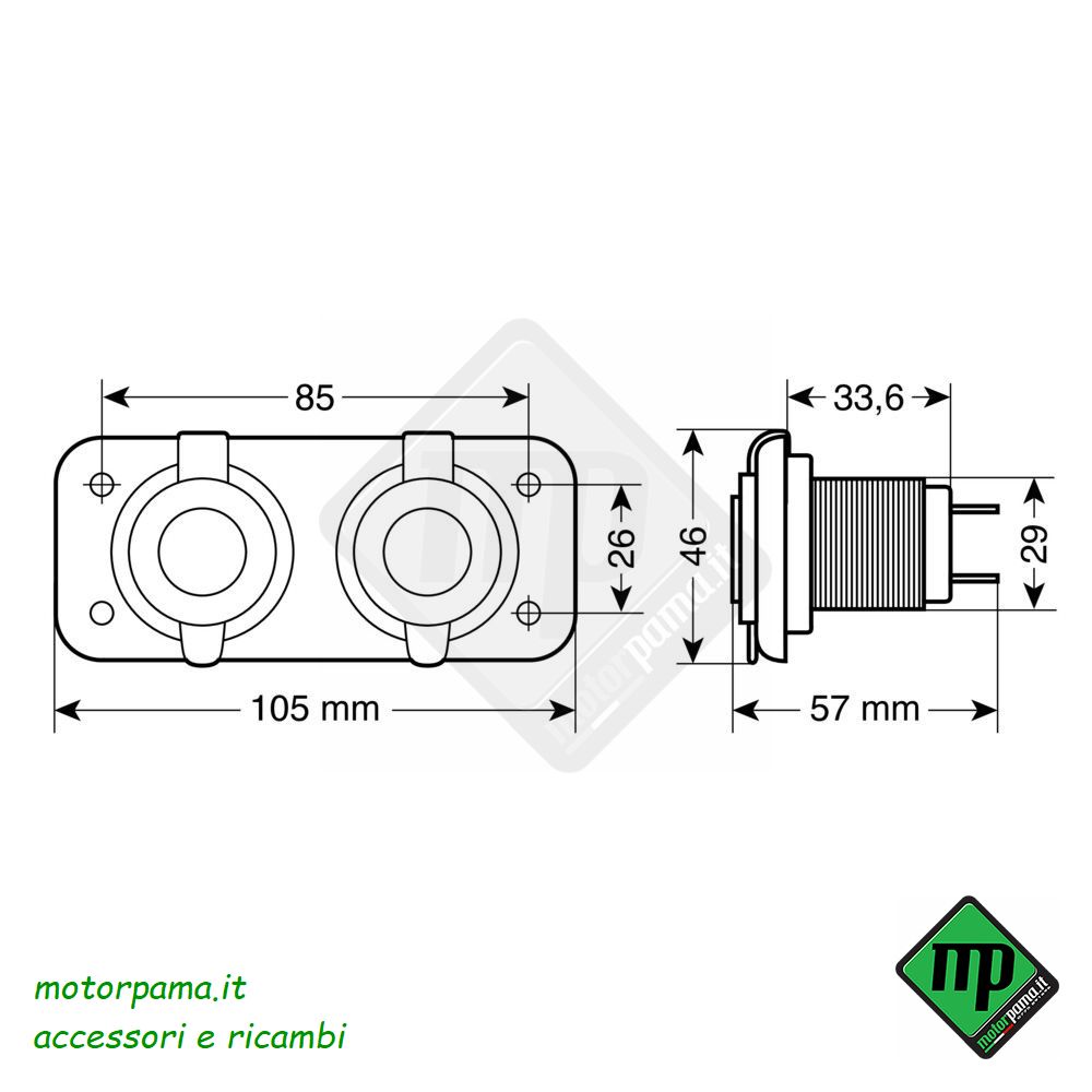 Per uso esterno o interno, con coperchi di chiusura. Max 20A (10+10A). Universale