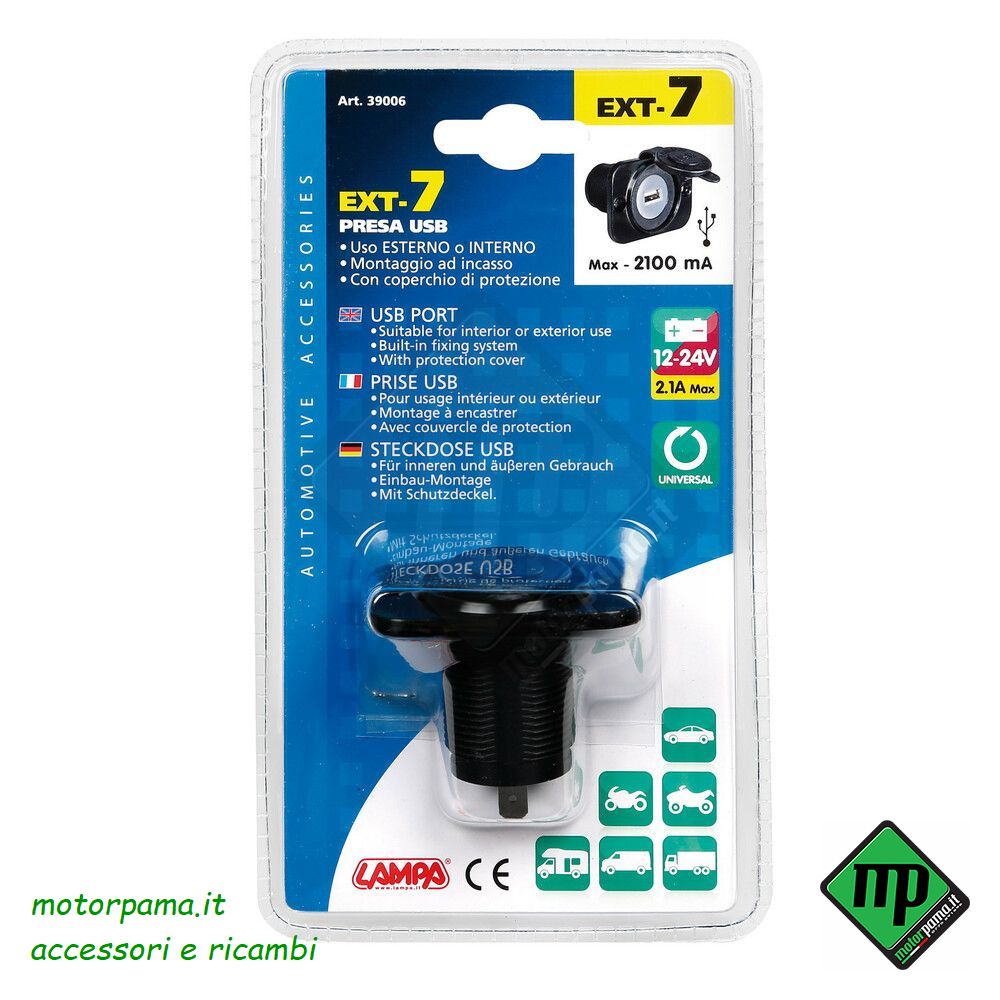 Ext-7, presa Usb, montaggio ad incasso, 12/24V