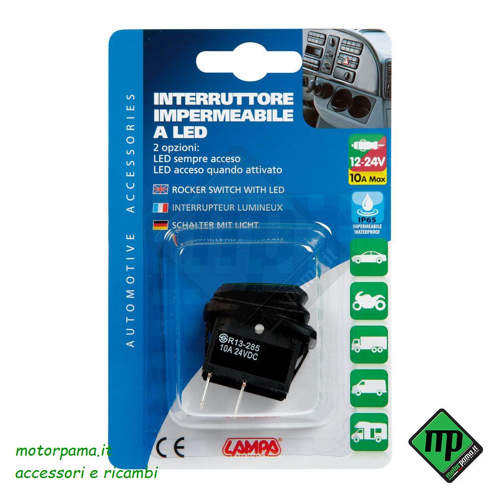 Interruttore impermeabile con spia a Led – 12/24V – Verde