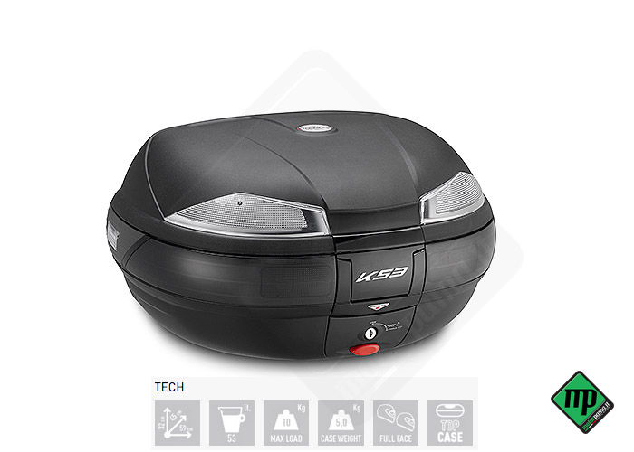 K53N valigia bauletto portapacchi Kappa da 53 Lt. nera goffrata impermeabile, con maniglia estraibile, ideale per maxiscooter e moto.