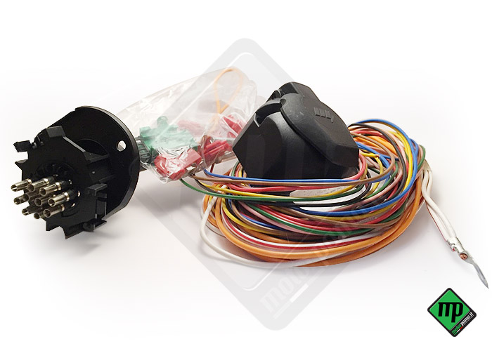 Il Kit cablaggio C elettrico a 13 poli SENZA centralina è universale, adattabile su tutti i carrelli tra i quali Umbra rimorchi e Cresci rimorchi. Da installare o sostituire sulla piastra del carrello serve a collegare il carrello correttamente all’impianto elettrico dell’auto.