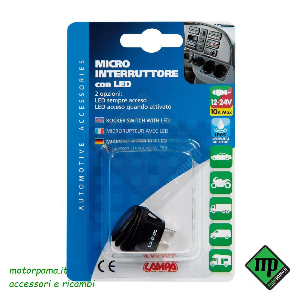 Micro interruttore impermeabile con spia a Led – 12/24V – BLU