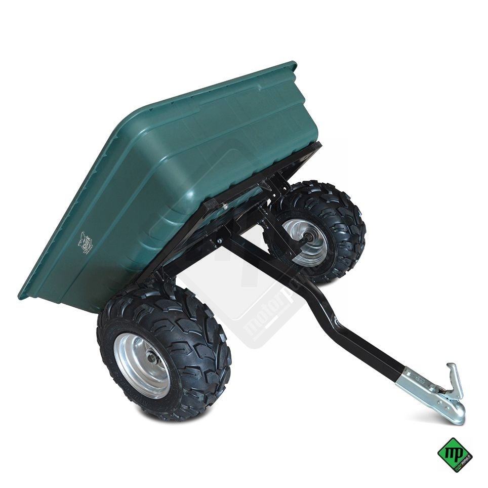 Rimorchio ATV ribaltabile multiuso leggero, max. portata 300 kg, facile da manovrare, perfetta per lavori di piccole e grandi dimensioni, vasca in polietilene per impieghi gravosi, robusto telaio interamente in acciaio verniciato a polvere.