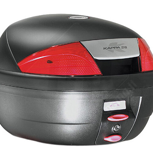 Baule / bauletto / portapacchi Kappa capienza 28 litri ideale per scooter – maxi scooter – scooterone Nero goffrato con catadiottro rosso. K28BAS rientra nella famiglia valigie e bauletti Monolock® System